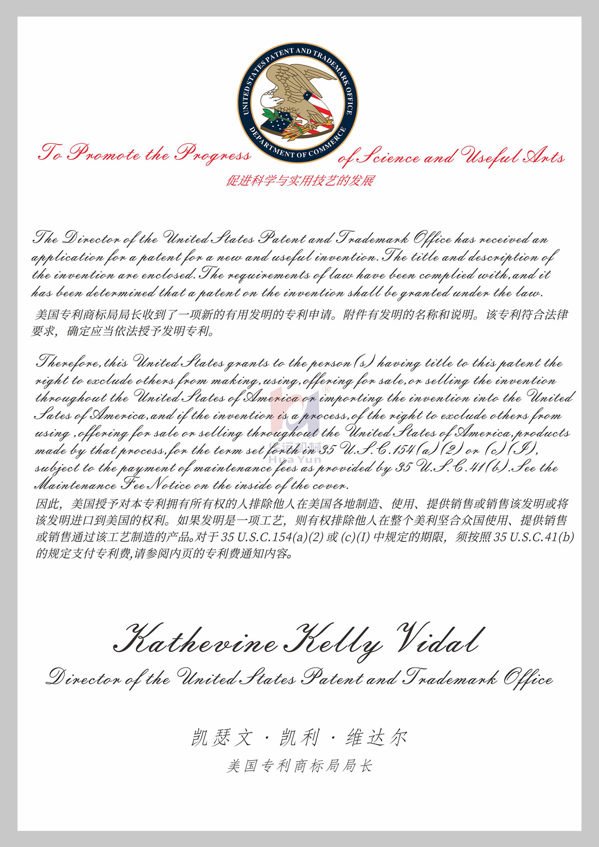 美國(guó)專(zhuān)利證書(shū)